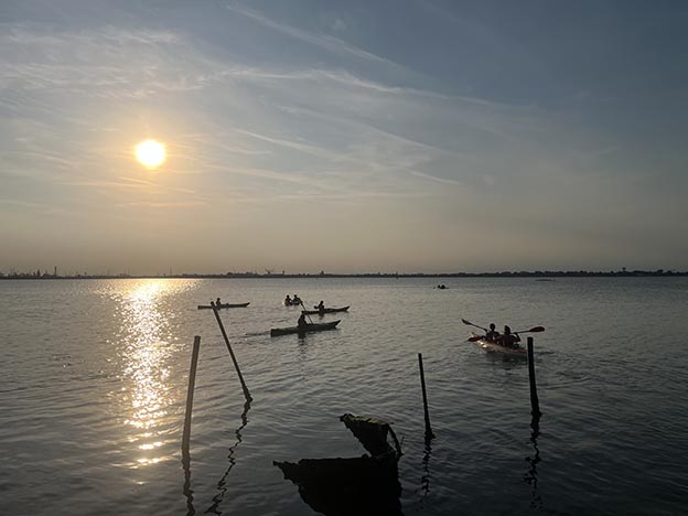Ad esplorare la biodiversità della Riserva Marina protetta di Miramare, dove ci ha salutati anche un delfino. E quella delle barene della laguna di Venezia, con una guida d’eccezione. Ma anche Porto Marghera, a riflettere sull’economia di oggi. Nelle montagne della Carnia a disegnare quelle Terre d’Incanti, sotto la pioggia.